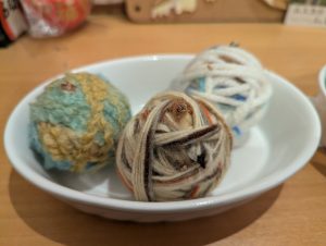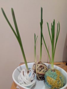 球根を水苔で巻き毛糸でまぁるく巻いていきます🧶